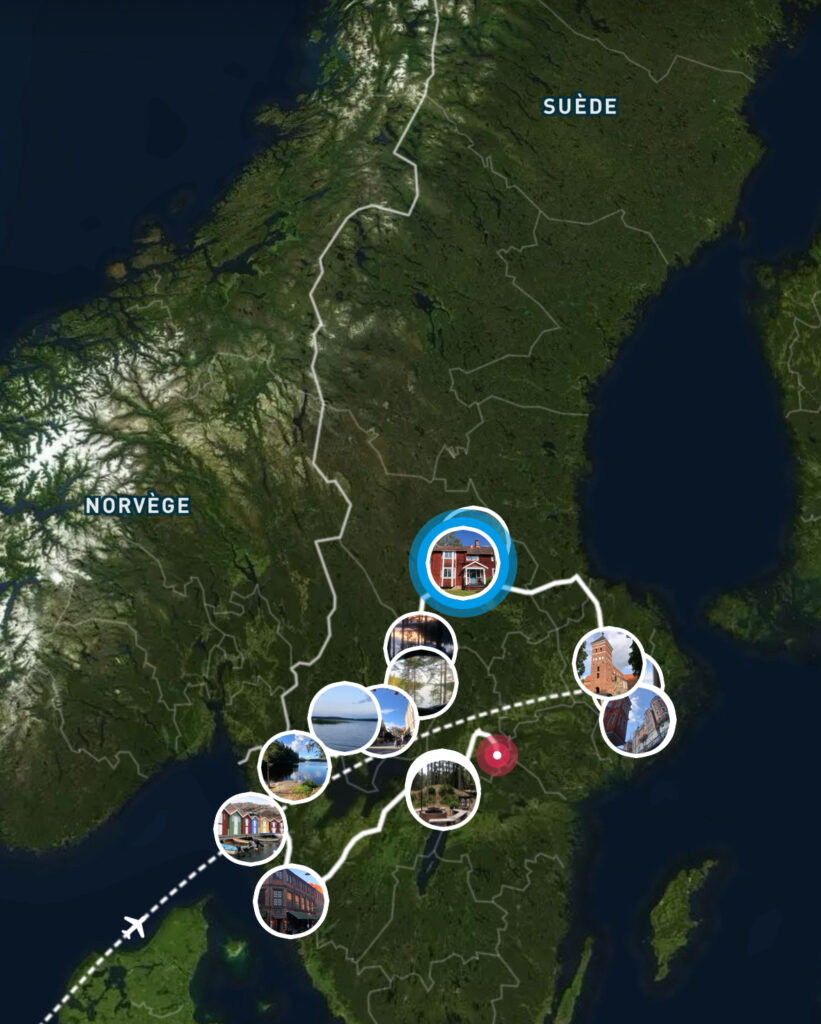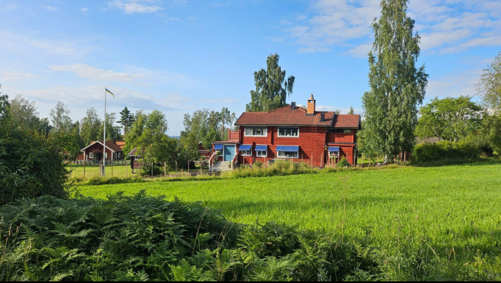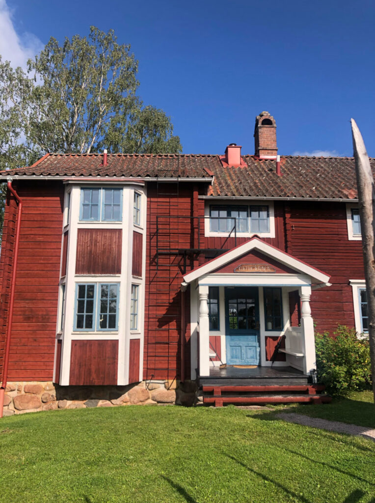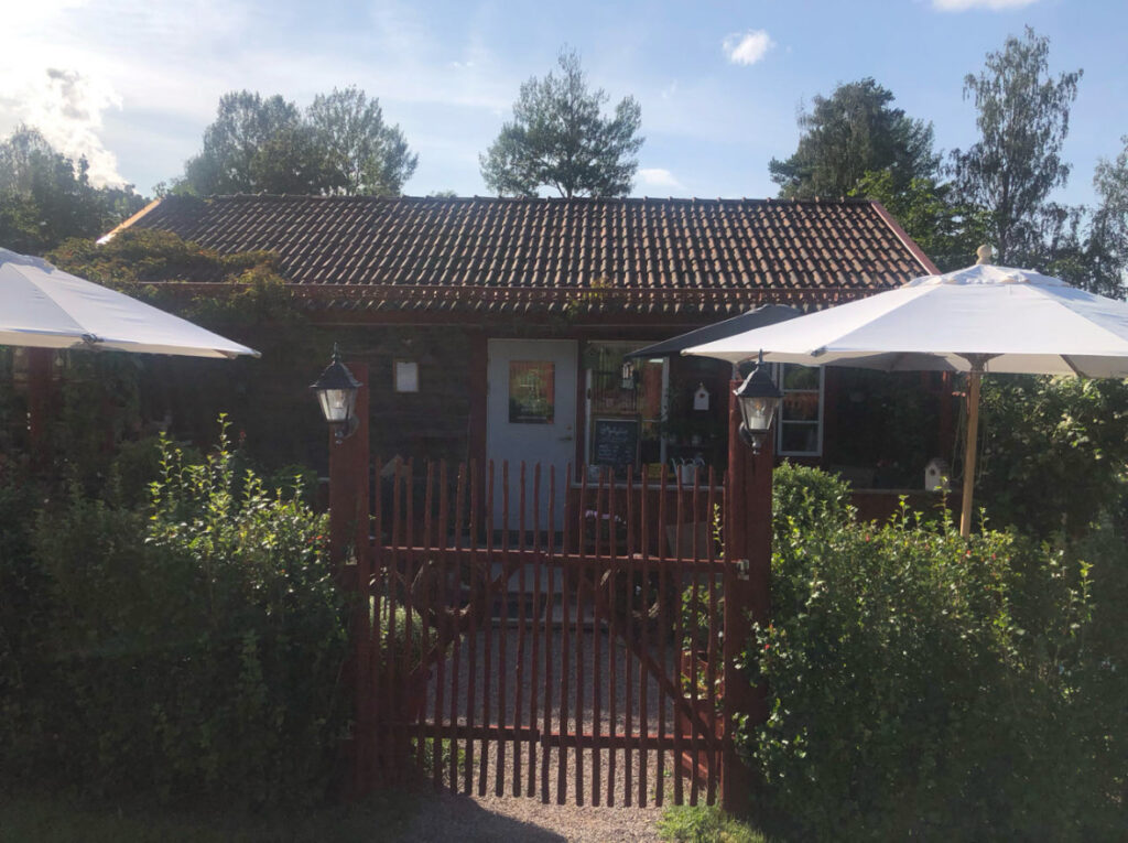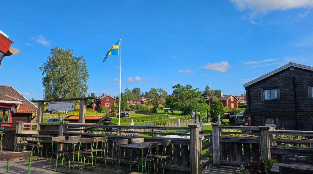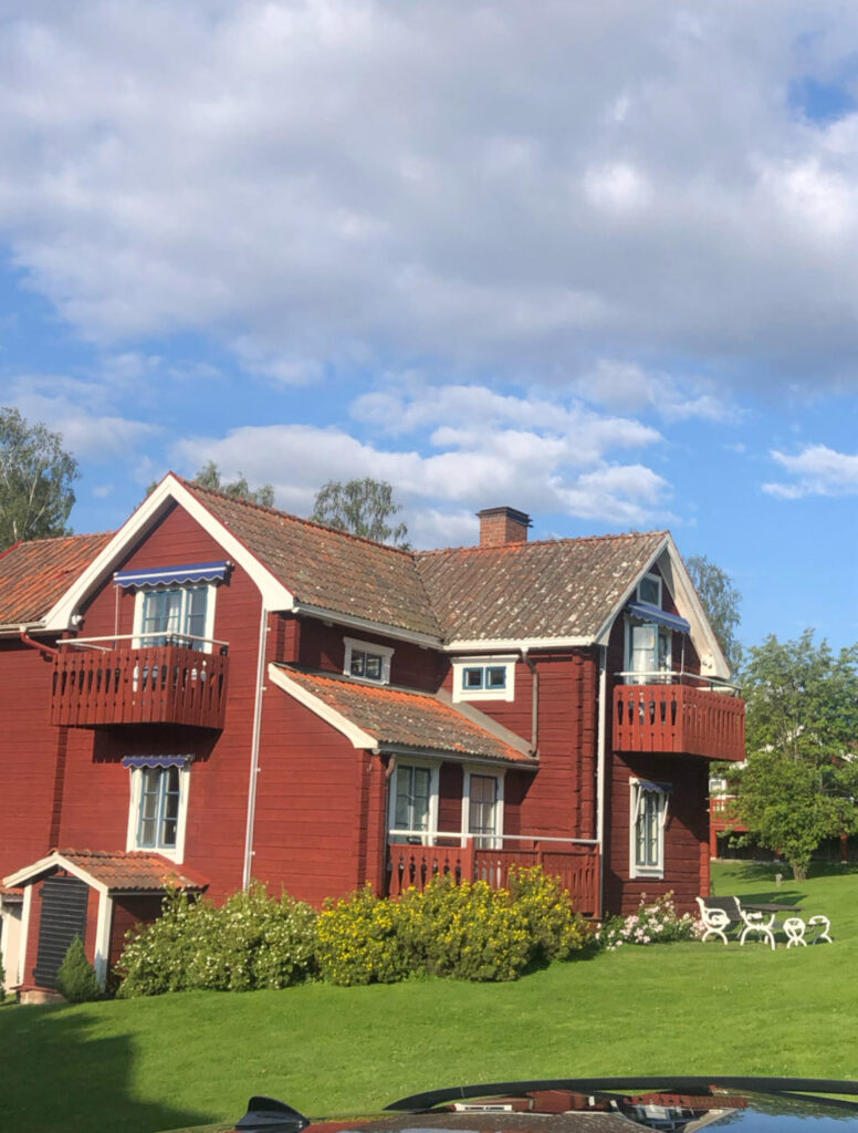 Nous nous arrêtons dans un charmant village qui doit être un village vacances géant. C’est très charmant. Nous prenons un « Fika » c’est à dire une sorte de goûter. Un carrot cake et un café.