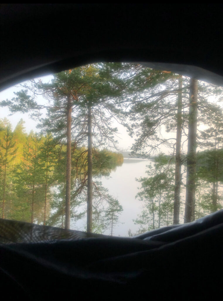 Un café chaud est le bienvenu dans cette fraîcheur matinale. La vue est vraiment belle depuis notre tente.