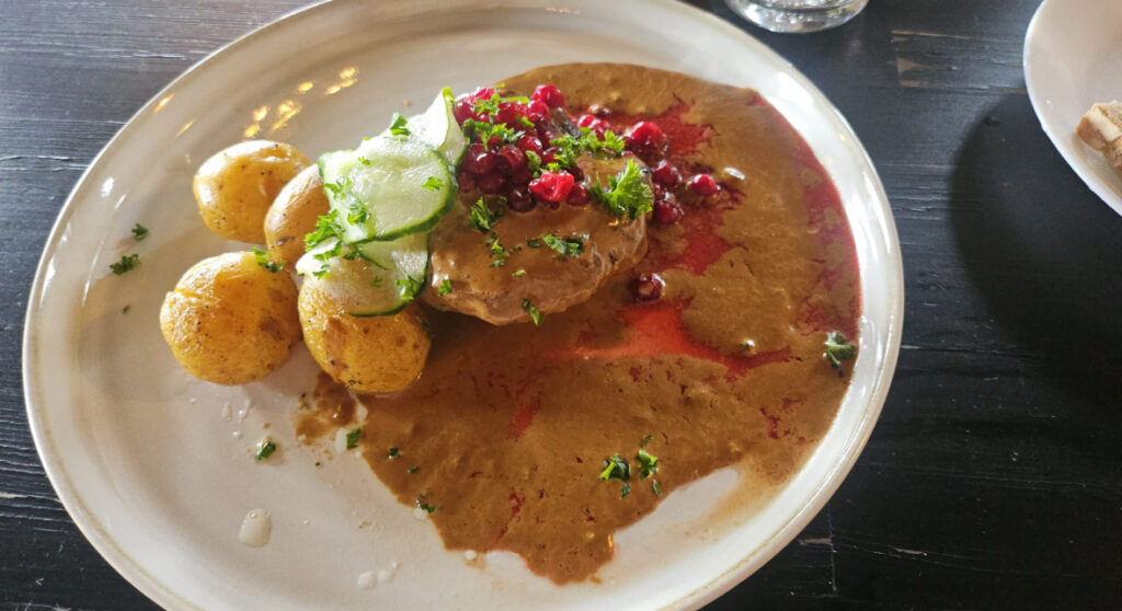Il faut remballer. Direction Karlstadt ! Nous nous arrêtons sur la route à Filipstadt pour déjeuner au Lodge Big Hill du sanglier et des pommes de terre rôties. C’était excellent et nous regrettons une part plus grosse.