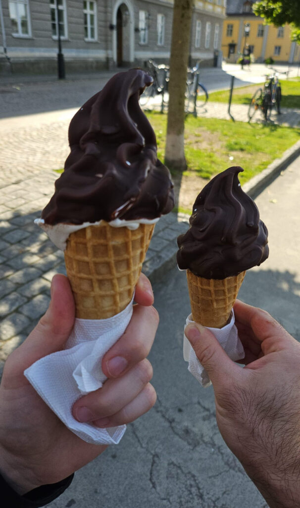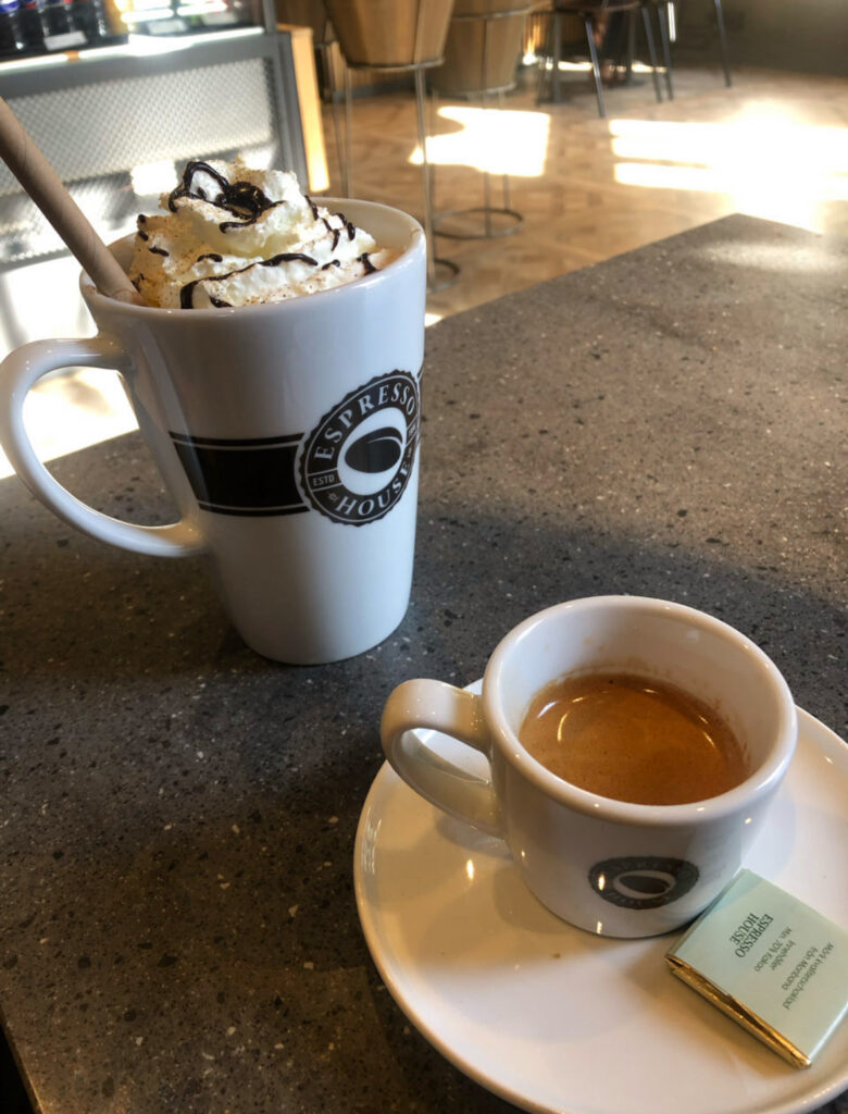 On y prend une glace à l’italienne enrobée de chocolat ainsi qu’un café (assez pimpé pour Tim)
