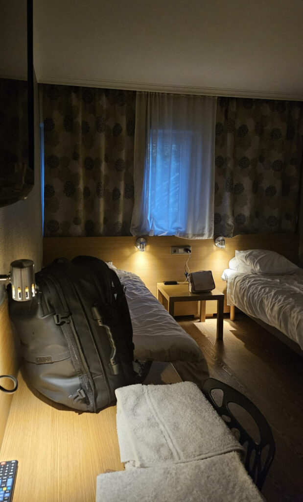 Cette fois-ci nous dormons dans une auberge de jeunesse, Göteborg. Un toit, des toilettes et une douche. Quel confort !