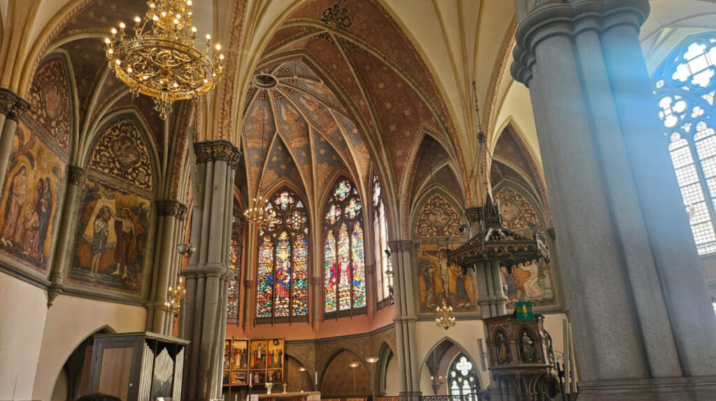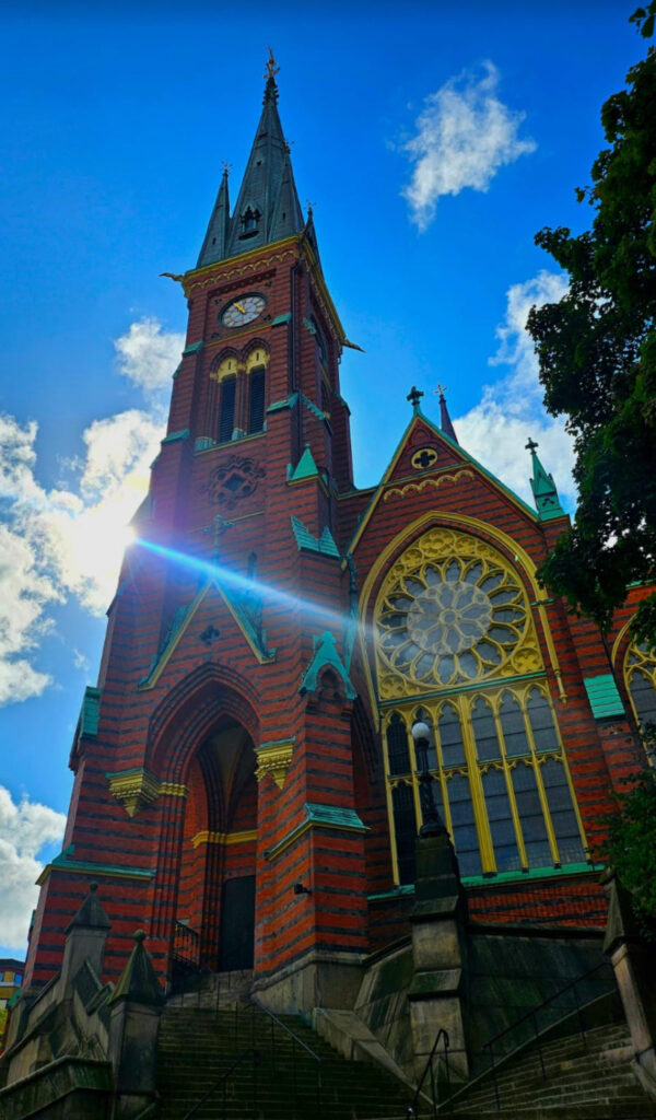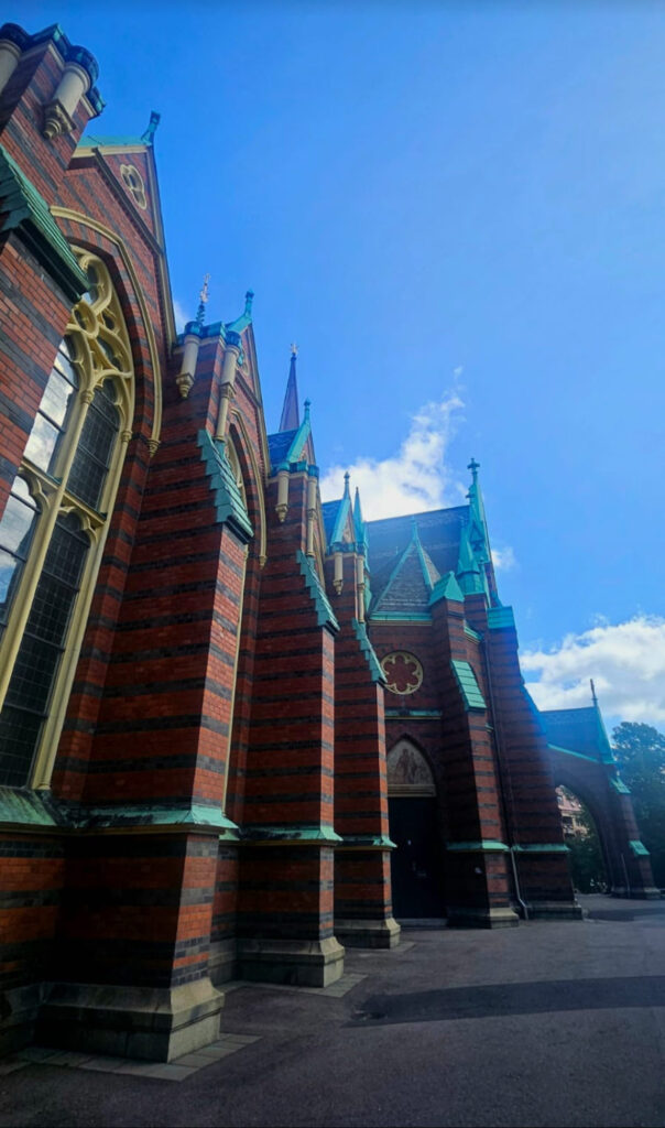 Nous nous dirigeons ensuite vers l’église Oscar Fredrik, dont les couleurs nous ont attirés.