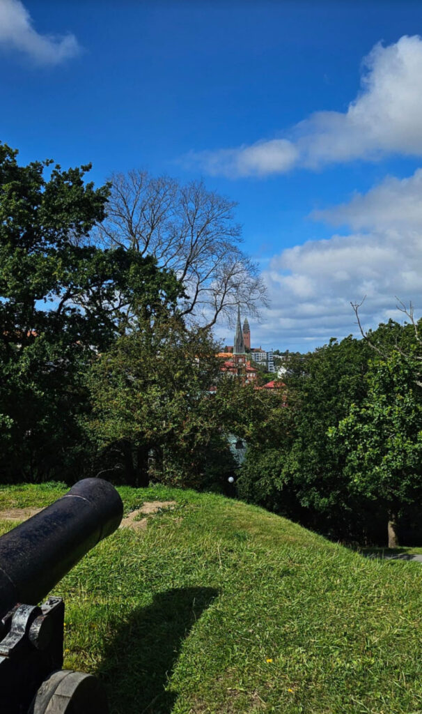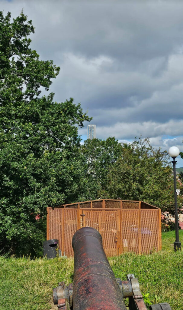 Au dessus se trouve des restes de la fortification avec une vue pas trop mal sur la ville. Il y avait encore des canons pointés vers l’église…