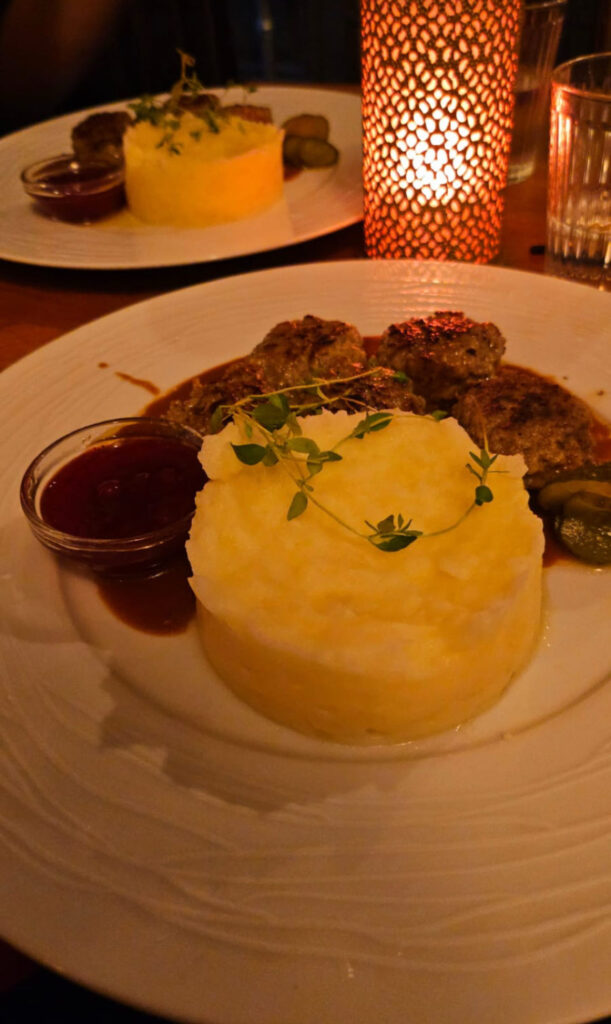 La journée se termine sur des boulettes de viande, purée et confiture d’airelles. Les boulettes étaient particulièrement succulentes.